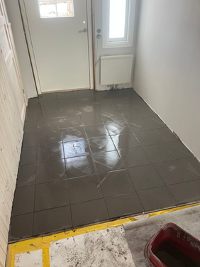 Uppdraget omfattade markarbete och uppbyggnad av utemiljö, där vi ansvarade för att färdigställa både en plan, en parkeringsyta samt två altaner om cirka 70 kvm vardera. Planen förstärktes med cirka 15 cm slitlager ovanpå befintligt bärlager, medan parkeringsytan dimensionerades med ett något tjockare lager för att klara högre belastning. Materialet lades ut med hjullastare och justerades noggrant för att uppnå optimal nivå och fall. Därefter packades samtliga ytor med markvibrator för att säkerställa stabilitet och lång livslängd. Altanerna innebar särskilda utmaningar på grund av ojämnt underlag. För att skapa rätt förutsättningar inleddes arbetet med markjustering med minigrävare, följt av noggrann uppregling. Konstruktionen utfördes med en lutning om cirka 2 cm från fasad för att säkerställa effektiv avrinning och förebygga fuktskador. Trall monterades med generalskarv, ett medvetet val för att möjliggöra framtida installation av avskiljande väggar mellan altandörrar samt för att skapa ett enhetligt och estetiskt slutresultat.